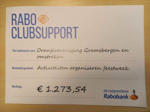 Fantastisch nieuws! Dankzij jullie stemmen heeft Oranjevereniging Gramsbergen e.o. een prachtig bedrag ontvangen van Rabo ClubSupport!
