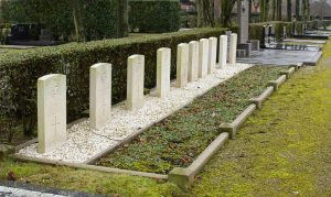 Het geallieerde erehof in Gramsbergen herbergt het stoffelijk overschot van tien gesneuvelde militairen. Bij elk graf is een identiek grafteken van witte natuursteen geplaatst, met in reliëf een embleem en een kruis.